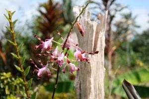 Stolz ist er auch auf seine vielen Blumen, die er ums Haus angepflanzt hat. Er scheint ein gutes Händchen dafür zu haben. Blumengärten sind in PNG übrigens Männersache. Die Frauen kümmern sich um die Gemüsegärten – und diese sind nicht ums Haus rum, sondern irgendwo im Urwald versteckt, also eine kleine Wanderung entfernt.