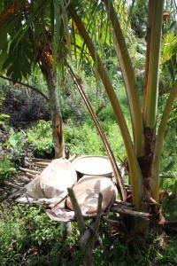 Gelagert wird das Sago einfach in Plastiksäcken oder auch Schüsseln in Hausnähe. Dort holt man sich, was man zum Kochen braucht. Wie gekocht wird, erfahrt ihr in einem nächsten Blogeintrag. Aber der muss erst noch geschrieben werden ;o)