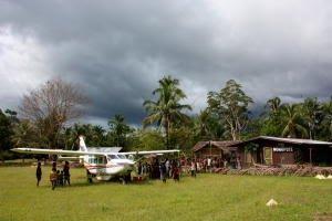 Genau! Mittlerweile sind wir wieder da und so nach und nach werden wir das ein oder andere Erlebnis aus dieser Zeit hier hochladen. Vom 5. bis 11. Mai waren wir in Moropote. Das ist ein kleines Dorf zwischen der Sepikebene und dem Hochland mit ca. 200 Einwohnern. Keiner weiß genau, wie viele Leute da wirklich wohnen – wir fragten 3 verschiedene Leute und die Angaben schwankten zwischen 150 und 250… Dieser Sonderurlaub trägt eigentlich den Namen MAF-Bush-Orientation und ist Teil des Ankommens für neue ausländische Mitarbeiter hier bei MAF PNG. Man kommt ins Land, hat zwei Wochen Sprachkurs und danach wird man damit in ein Buschdorf geschickt, um die Sprachkenntnisse anzuwenden und zu vertiefen sowie um Land und Leute kennenzulernen. Außerdem erlebt man dadurch auch, wie abgeschieden die Menschen leben und wie wichtig der Flugdienst von MAF ist. Was für uns eine knappe Stunde Flug war, bedeutet auf dem Landweg eine achtstündige Fahrt mit dem PMV, dann steigt man für einen weiteren Tag in ein Kanu mit Außenbordmotor und den letzten halben Tag ist man noch zu Fuß unterwegs. Martin flog uns vergangenen Mittwoch nach Moropote, wo uns die Menschen schon am Landeplatz freudig und neugierig empfingen.