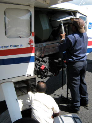 Bis unters Dach war die GA8 vollgepackt mit einer Maschine zum Goldwaschen. Auch solche Flüge gehören mit zum Programm, aber subventioniert werden diese Flüge nicht. Mit diesen Flügen verdient MAF Geld, um missionarische Flüge zu unterstützen. Nachdem ich die Goldmaschine in Okisai abgeladen hatte, ging es nach Telefomin, wo ich eine andere GA8 übernehmen und nach Wewak zurückfliegen sollte. Dummerweise war der Schlüssel für das andere Flugzeug nicht auffindbar. Nach einigem hin und her nahm ich den Ersatzschüssel und startete nach Wewak, um dort um 18:07 Uhr zu landen. Genau 7 Minuten nach meiner Landezeitbeschränkung. Wäre kein Gegenwind gewesen, hätte ich es noch geschafft. Aber so musste ich den Chefpiloten davon unterrichten.