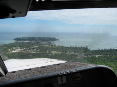 Hier in Wewak ist ein kleiner Militärstützpunkt von PNG, und zwar genau auf der dem Flugplatz vorgelagerten Halbinsel. In der Platzrunde bzw. im Endanflug kreist man da einmal drumherum. Ist also in dem Sinn kein Sperrgebiet.