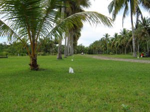 Eine kleine Palmenallee führt zu einer kleinen Gedenkstätte mit einer Gedenktafel, die einen kurzen Eindruck vermittelt, wie und wo die Japaner und Australier hier an der Nordküste Papua Neuguineas gekämpft haben.