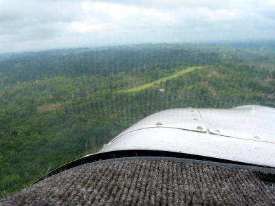 Mitte November waren wir in Arkosame, einem Buschdorf am südlichen Rand des Küstengebirges, dort, wo die flache Sepikebene in die ersten Hügel des Küstengebirges übergeht. In Arkosame hatten wir einen Tage lang die Landebahn vermessen, damit das Dorf bald wieder einen Landeplatz hat. Damals haben wir den Leuten noch eine Liste mit nötigen Arbeiten gegeben, wie z.B. eine tiefen Graben ziehen und Bäume im Anflug schneiden. Die Arbeiten waren schon zwei Wochen nach unserem Besuch erledigt, aber mein Flugprogramm führte mich erst in der vergangenen Woche wieder nach Arkosame, um einen tiefen Überflug über die Landepiste zu machen. Der Überflug ist nötig, damit ich die Arbeiten anschauen und Bilder machen kann. Zusammen mit den Ergebnissen aus unserer Vermessungsaktion muss unser Chefpilot jetzt entscheiden, ob MAF das Risiko einer Testlandung tragen kann, oder ob Mandy und ich nochmals die lange Autofahrt von 10 Stunden auf uns nehmen, um letzte Anweisungen von unserem Chefpiloten anzuleiten. Seit Anfang diesen Jahres arbeiten die Dorfbewohner an der Wiedereröffnung. Wir hoffen, dass die erste Landung noch vor der Regenzeit im Januar stattfinden kann.