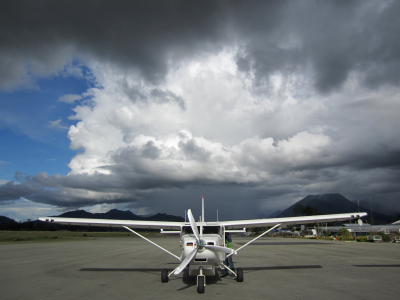 Montag – Mount Hagen Und wieder ging es nach Mt. Hagen. Mandy war als Copilotin dabei. Das Wochenende über war es wettertechnisch schon recht regnerisch und auch heute mussten wir zwei Stunden warten, bis die Wetterberichte so waren, dass wir starten konnten. Sangera meldete am Morgen noch 8/8 Wolken, zwei Stunden später hieß es, die Wolken über der Landebahn sind aufgerissen. Richtung Mt. Hagen entwickelte sich das Wetter auch besser und so sind wir gestartet. Über den Wolken ging es in die Sepikebene. Nur den Sepik haben wir nicht gesehen und ebensowenig Sangera. Das Ersatzteil für den Rasenmäher müssen wir nun spazierenfliegen. Weiter gehts nach Tamo. Dort will ein Passagier aussteigen. Die Wolkendecke in dieser Ecke lässt einen Sinkflug hindurch zu und wir können landen. Der Turn Around geht schnell und wir starten noch, ehe die Caravan landet.