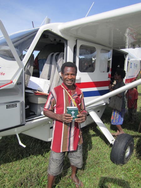 In Anguganak will ich schon wieder starten, da kommt Graham Erb zum Flugplatz. Ich breche die Startvorbereitungen ab, um mich auch mit ihm noch kurz über das Bibelprojekt zu unterhalten. Graham ist einen australischen Bibelschullehrer der schon jahrelang für Seminare an die Bibelschule nach Anguganak kommt. Sein Zeugnis: „Die Bibelschulstudenten, die vor zwanzig Jahren in der Bibelschule Lesen und Schreiben gelernt haben, haben dieses Wissen ihren Kindern nicht weitergegeben. Das Ergebnis ist, das wenige in der heutigen Generation in der Lage sind die Bibel zu lesen.“
