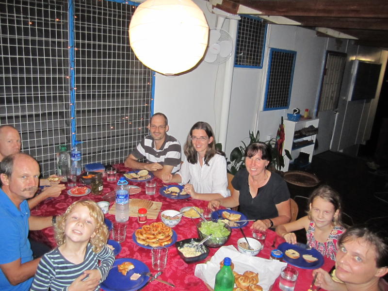 Mit einem leckeren Abendbrot mit Wantoks auf unserer Veranda. Und wenn jeder was mitbringt, dann wird´s richtig gut! Frisch gebackene Laugenbrezeln, Körnerbrot und Pizzaschnecken, Metzger-Leberkäs aus der Dose Dank eines Päckchens aus Deutschland, Wurstsalat und Eiersalat, und weile auch noch ein wenig gesund sein muss, auch noch ein gemischter Salat mit leckerem Hochlandgemüse.
