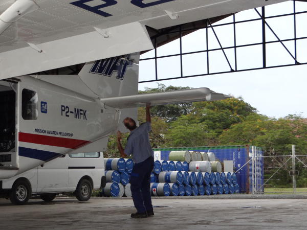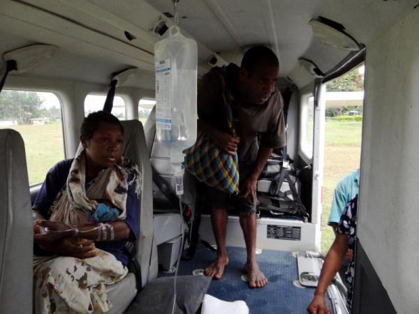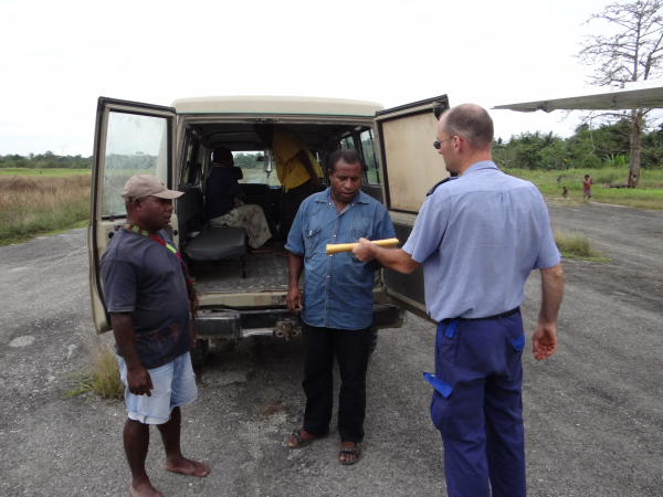 Wir starten gegen 8 Uhr zum Flugplatz. Ludmer hat bereits einen Anruf aus Lumi erhalten, dass die Frau bereit ist für den Medevac und auch das Wetter okay sei.