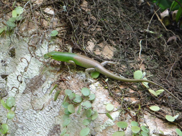 Stammgäste – wahrsten Sinne des Wortes – sind auch diese grün-braunen Echsen. Sehr edle Tierchen, wie wir finden…
