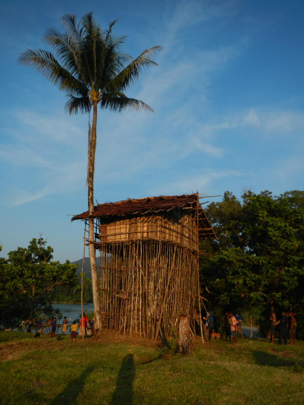 So lebten manche Dorfgemeinschaften im Busch von Papua Neuguinea. Vor allem zu Zeiten, in denen es an der Tagesordnung war, mit den Nachbardörfern im Streit zu leben. Solche Hochhäuser waren ein guter Ausguck und ein guter Schutz vor den Feinden.