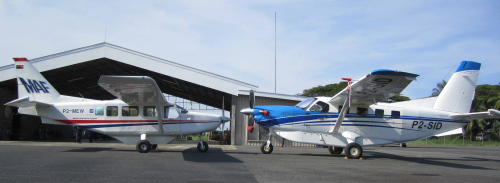 | Airvan GA8 und Kodiak vor dem MAF Hangar in Wewak |