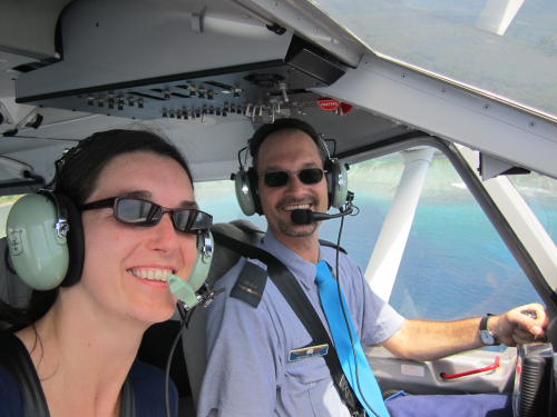 | Im Cockpit zwischen Karkar und Wewak. Der Herr Pilot mit Krawatte 🙂 |
