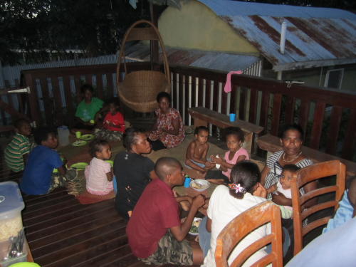 Hier auf dem Compound haben wir auch gemeinsam gefeiert. Mit gutem Essen, ein paar Feuerwerksraketen und einem netten Film. Eine gute Tradition: gemeinsam essen, reden, feiern, fröhlich sein!