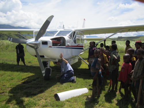 Ich saß schon im Flugzeug, fertig zum Weiterflug, Mathias machte noch eine kurze Kontrollrunde ums Flugzeug, und meinte dann, dass er außergewöhnlich viel Öl an einer Stelle gefunden hatte… Ob wir wohl doch nach Mt. Hagen zurück müssen???