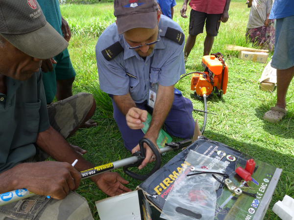 In Tinboli haben wir einen Rasenschneider abgeliefert. Und da wir Zeit hatten, haben Mathias und Wolfgang ihn gleich noch zusammengebaut und den Einheimischen erklärt, wie er funktioniert. Sie waren echt dankbar darum und haben versprochen, nun auch endlich das Gras auf der Landebahn zu schneiden. Und das ist dringend nötig!