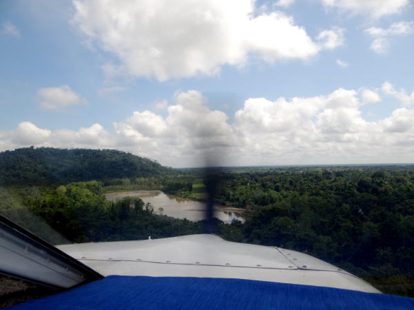 Aber der Regen lässt nach und wir heben ab. Der Sprit reicht auch und wir können direkt nach Wewak fliegen, müssen nicht in Ambunti nachtanken, obwohl wir dort am Morgen unser Zurückkommen für den Nachmittag bereits angekündigt hatten. Aber Sean, unser anderer Wewak-Pilot landet dort und kann von dort die Post mit nach Wewak bringen. Mike hat uns einen Brief für Deutschland mitgegeben, an ehemalige Liebenzeller Missionare, die in Ambunti stationiert waren.