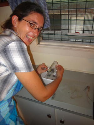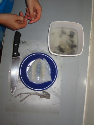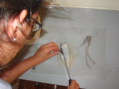 Und jetzt müssen die Innereien raus. Die Tintendrüse hat die Frau am Fischmarkt schon entfernt. |