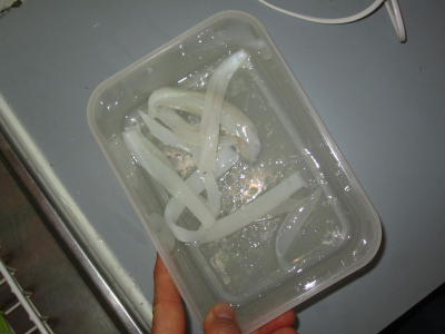 Das Rückgrat oder das Skelett des Tintenfisches. Sieht aus wie Plastik. |
